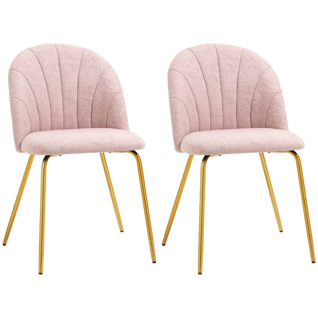Set 2 Sedie Imbottite 55,5x59x81 cm in Tessuto Effetto Lino Rosa e Oro