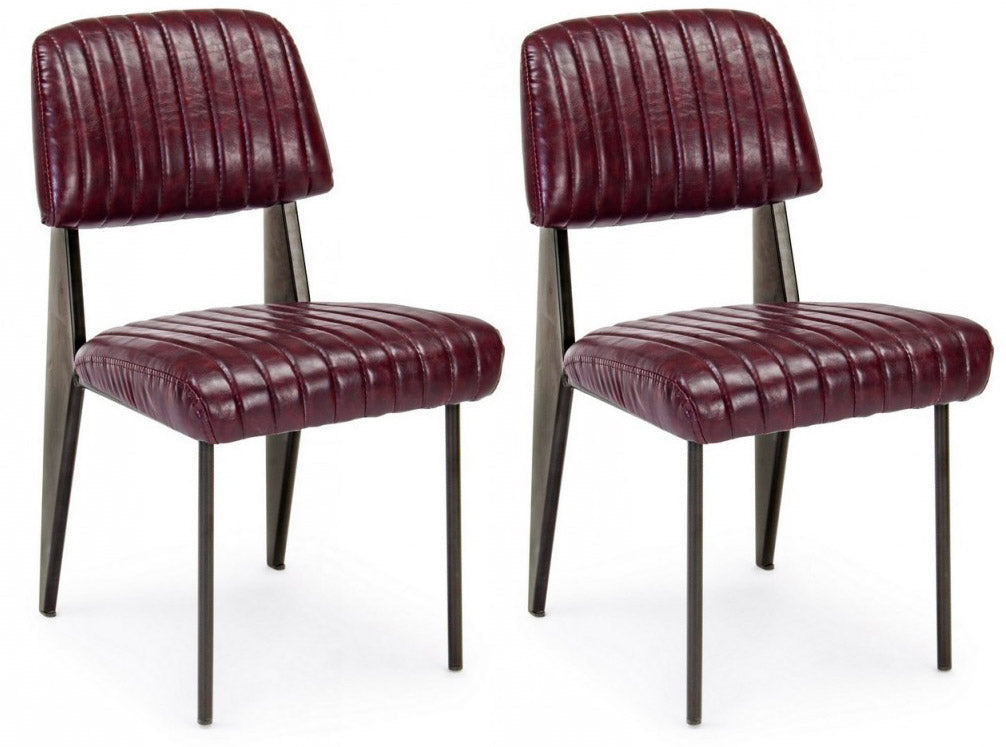 Struttura in acciaio verniciato a polvere epossidica.Rivestimento in similpelle.Densità imbottitura in schiuma poliuretanica seduta e schienale 35Set 2 Sedie Imbottite 60x59x81 cm Nelly in Ecopelle Bordeaux Vintage