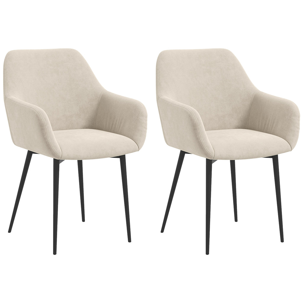 Set 2 Sedie Imbottite Stile Nordico 54x57x80 cm Tessuto Effetto Velluto Crema