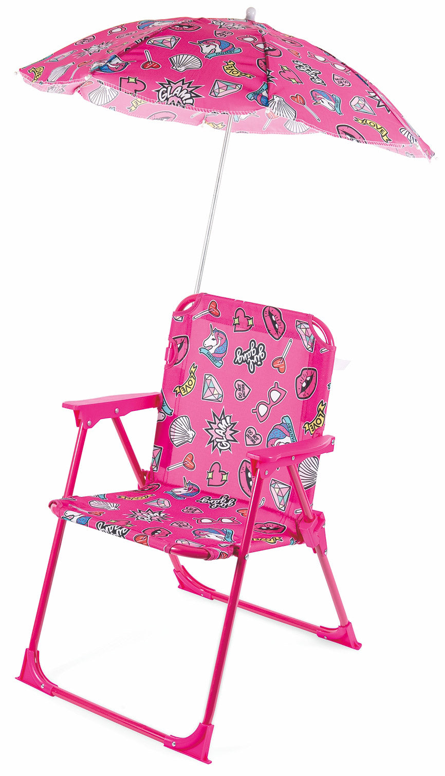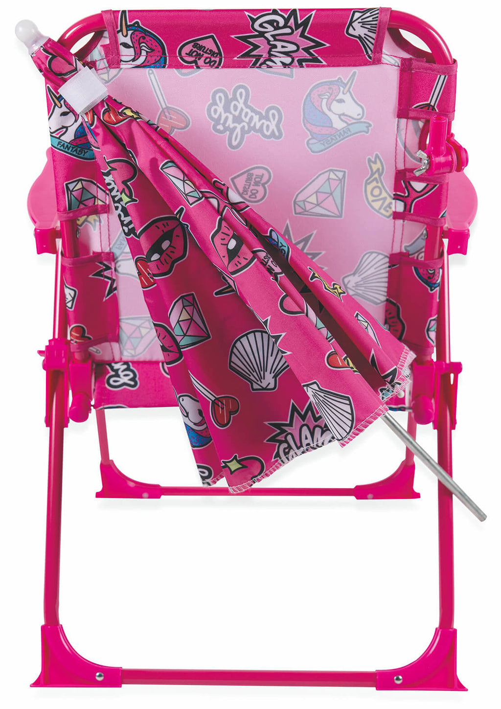 Technische Merkmale Set mit 2 zusammenklappbaren Spiaggine-Strandstühlen für Kinder mit Soriani Oxford Glamour-Sonnenschirm