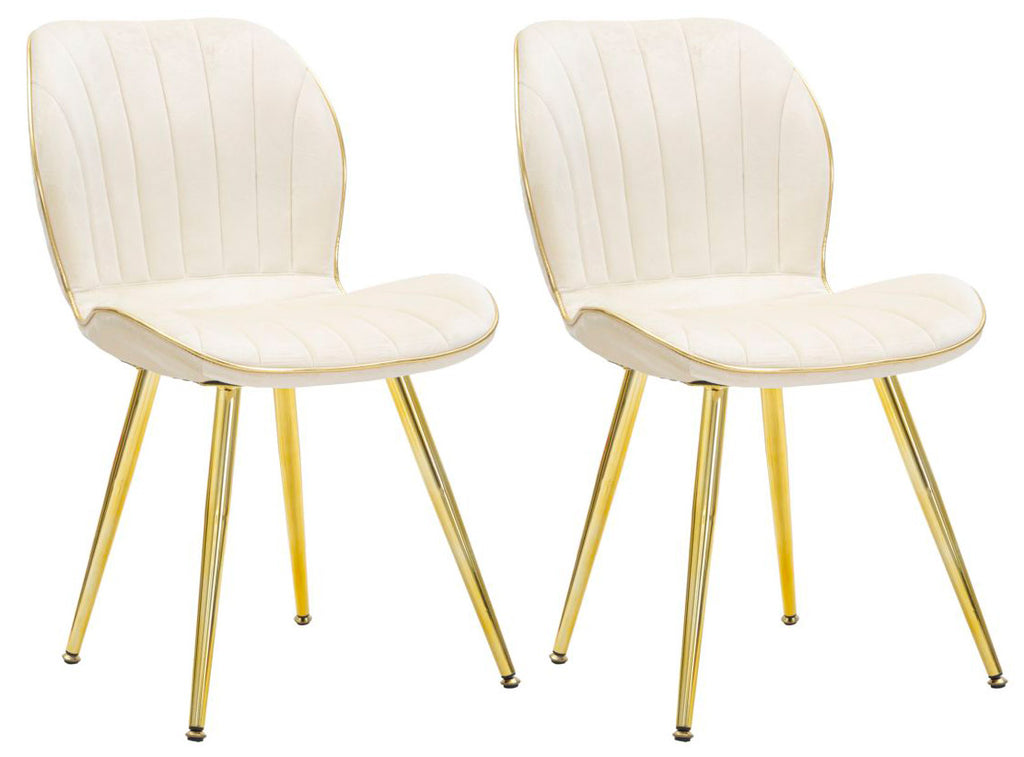 - Set 2 sedie imbottite in velluto sintetico crema con comodo schienale e rifiniture dorate