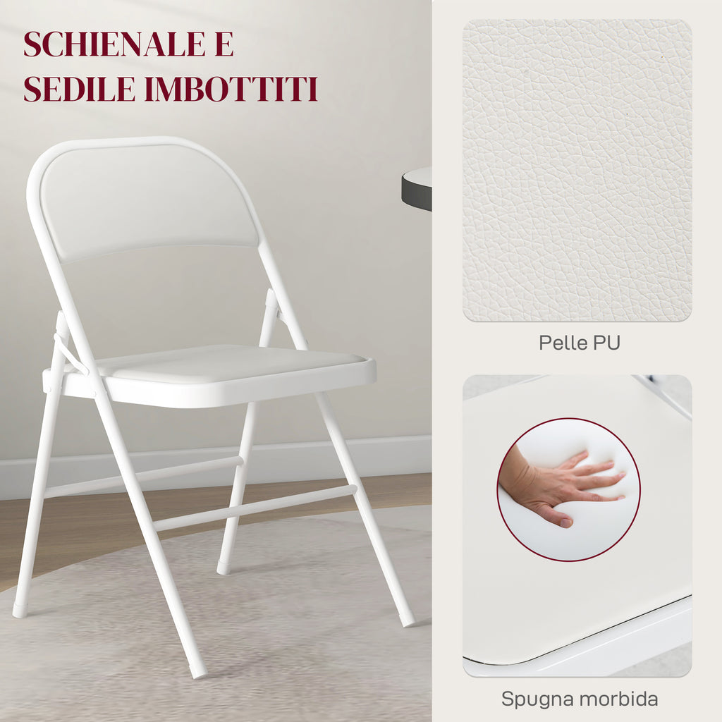Set 2 Sedie Pieghevoli 45x46x78 cm Imbottite in Finta Pelle PU e Metallo Bianco