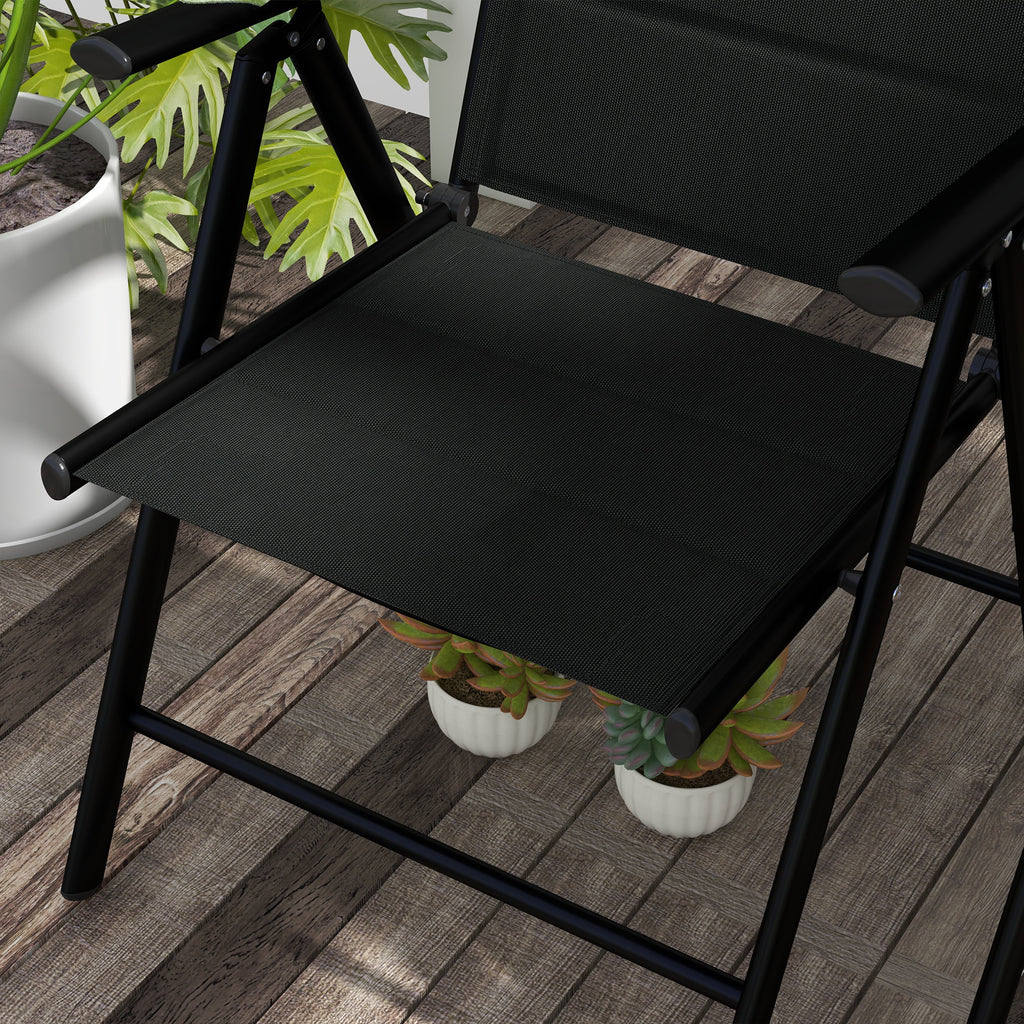 Set 2 Sedie Pieghevoli con Schienale Reclinabile e Poggiatesta 54x67x108 cm in Alluminio e Poliestere Nero