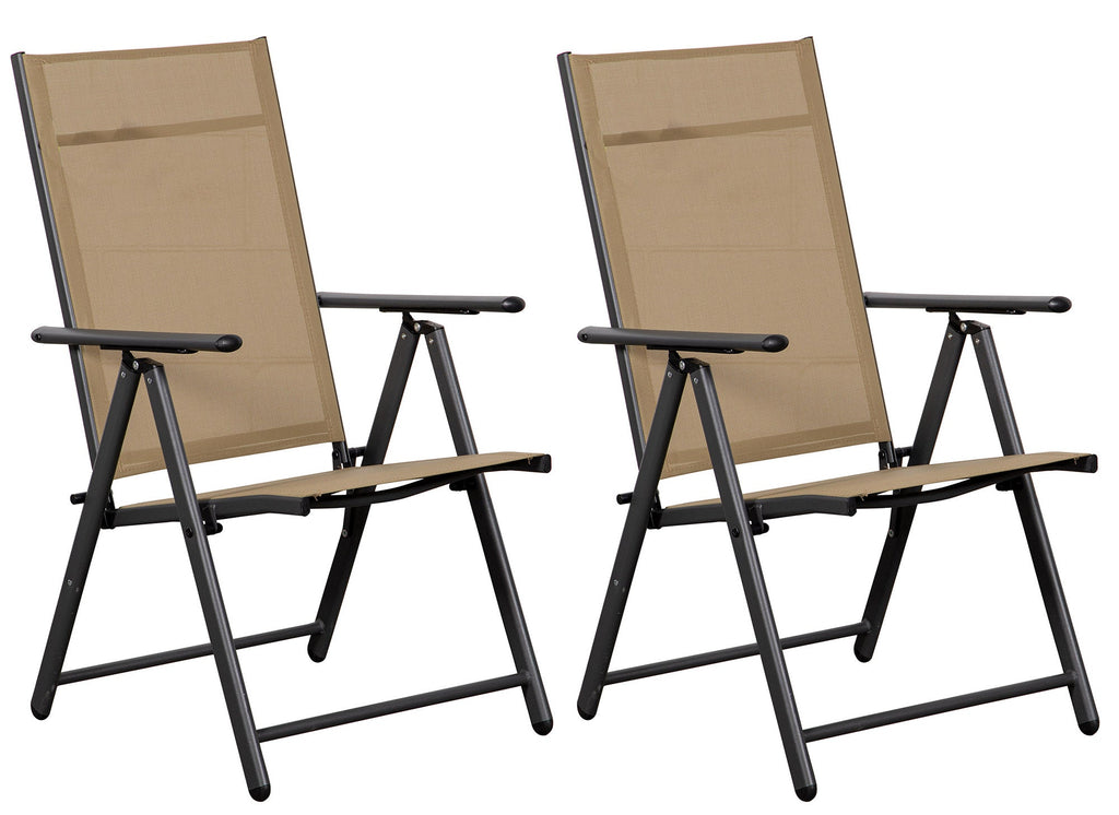 Set aus 2 klappbaren Gartenstühlen 57 x 67 x 107 cm aus Metall und taupefarbenem Textilene