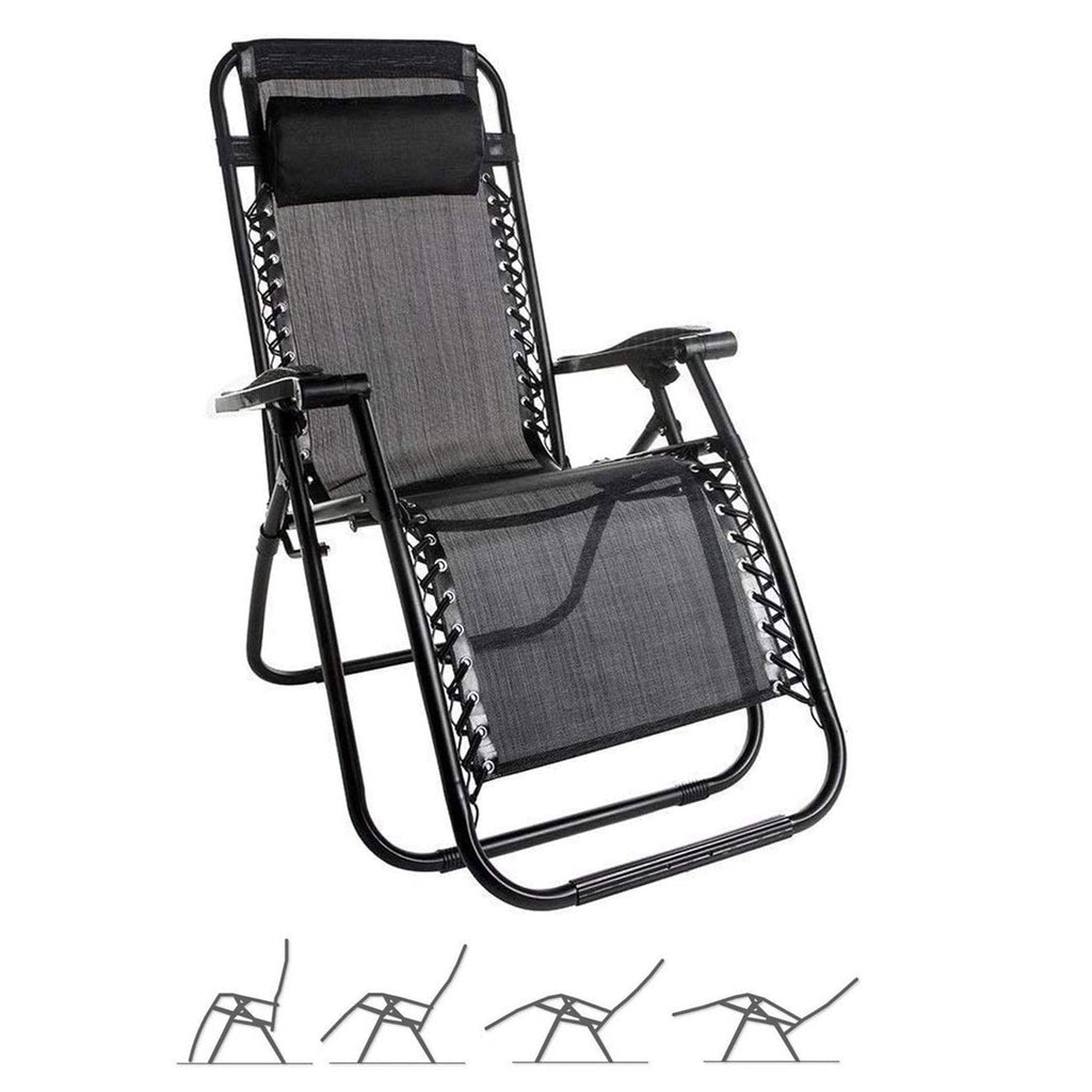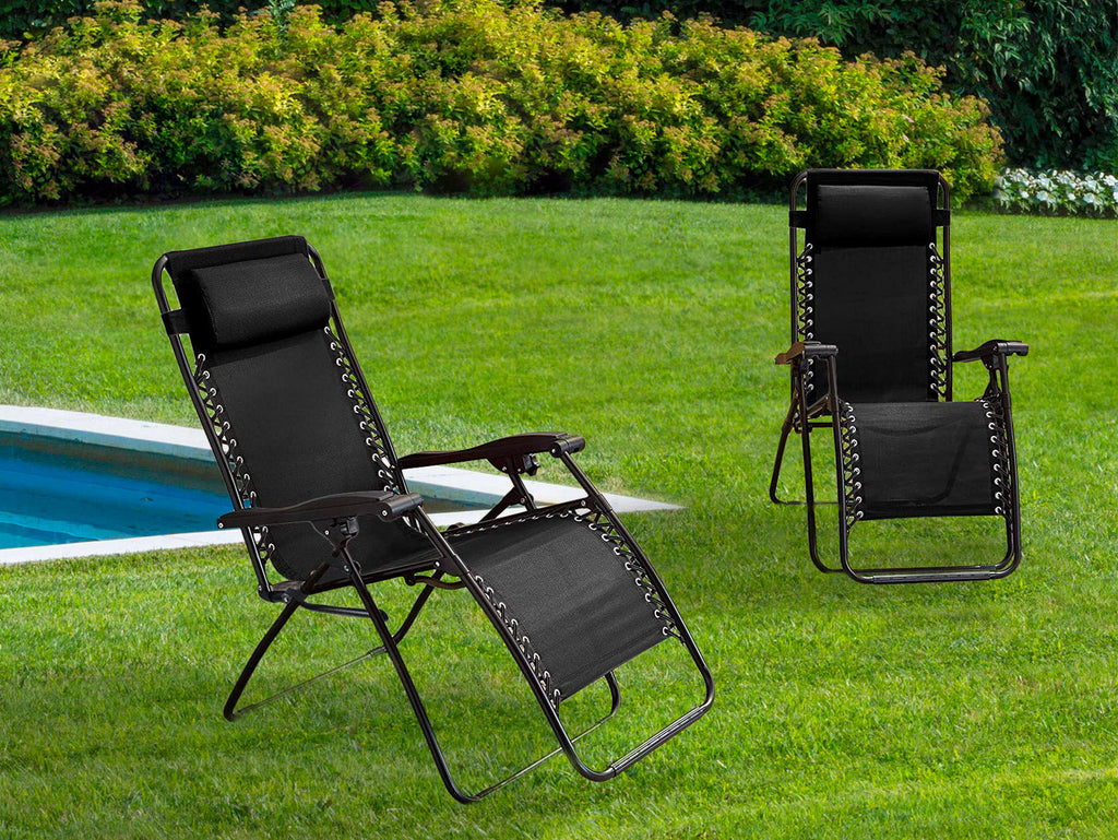 Set mit 2 klappbaren Liegestühlen Zero Gravity aus schwarzem Eisen und Textilene