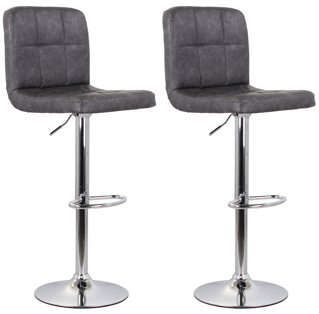 Set mit 2 Hockern 44x38x63/82 cm aus Kunstleder mit grau verchromter Basis