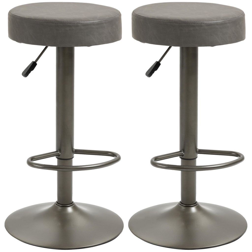 Set mit 2 Barhockern 35 x 36 x 64-85 cm mit Fußstütze aus grauem Kunstleder
