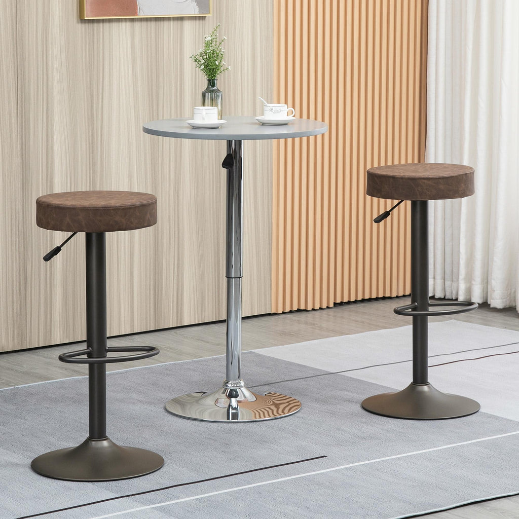 Geben Sie Ihrem Zuhause oder Restaurant einen neuen Stil? Mit diesem Barhocker-Set ist das ganz einfach! Die Kunstlederpolsterung wirkt elegant und die weiche Polsterung macht sie bequem. Der um 360° drehbare Sitz, das rückenfreie Design und die verstellbare Höhe ermöglichen es Ihnen, sich zu bewegen und die hohen Hocker an Ihre Bedürfnisse anzupassen. Die breite und widerstandsfähige Basis sorgt für optimale Balance und Stabilität, um jeden Moment entspannt zu genießen.