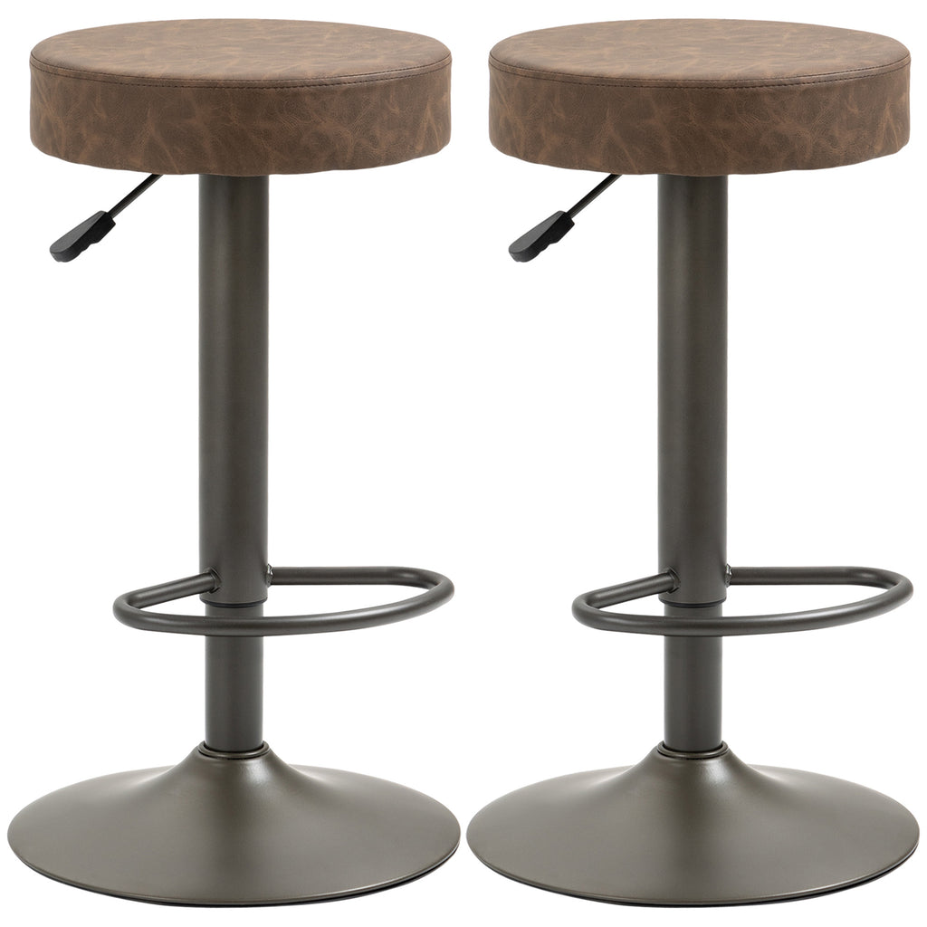 Set mit 2 Barhockern 35 x 36 x 64-85 cm mit Fußstütze aus braunem Kunstleder