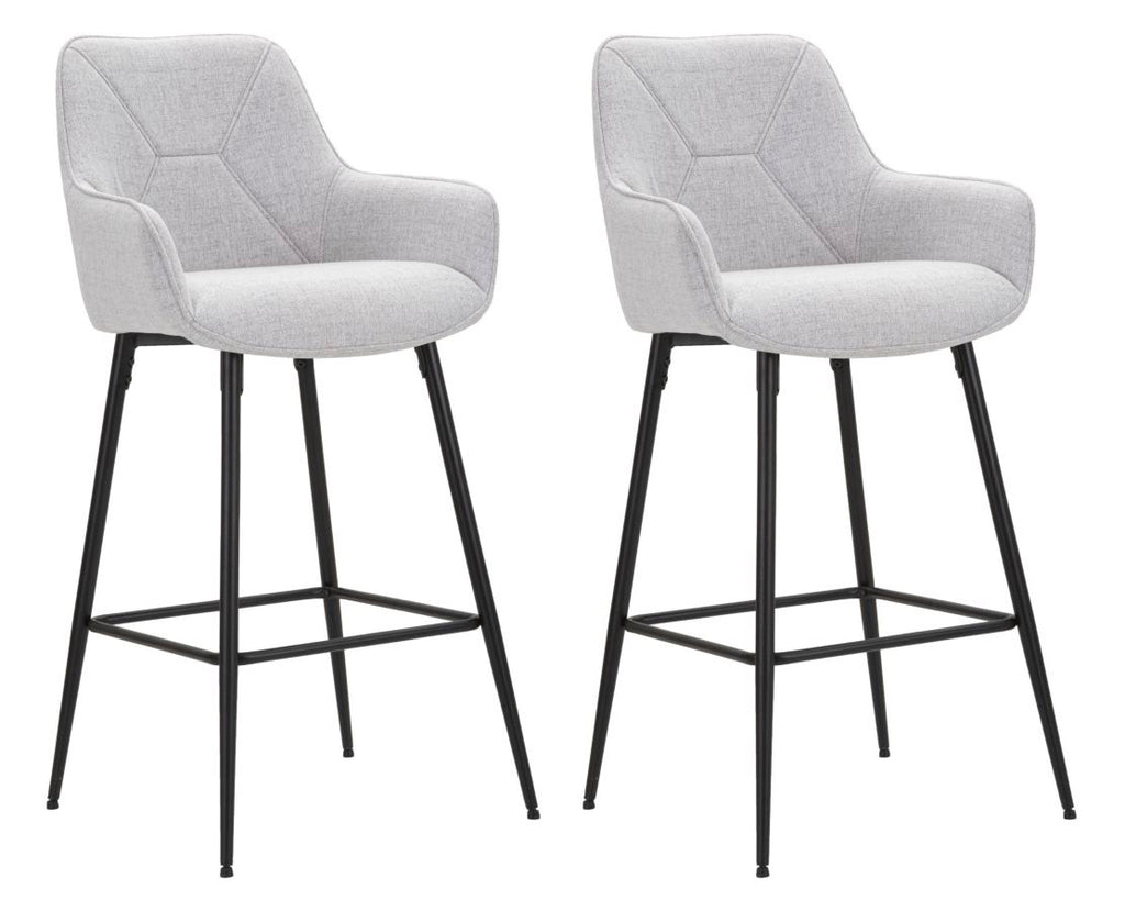 Questo set di 2 sgabelli da bar è perfetto per arredare con stile ogni ambiente. Realizzati in tessuto imbottito, offrono comfort e praticità grazie al pratico bracciolo. Le gambe e il poggiapiedi in metallo nero conferiscono una nota di eleganza, rendendo questi sgabelli un vero e proprio elemento di classe per ogni contesto dove vengono collocati.