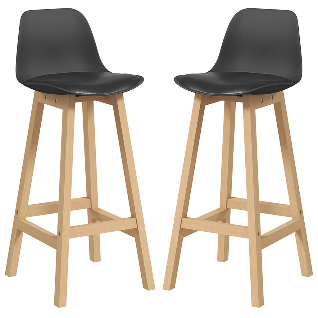 Set 2 Sgabelli da Bar 39x41x96 cm Gambe in Legno e Cuscino in Similpelle Nero