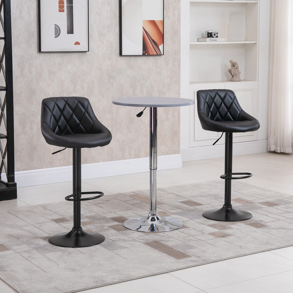 Bringen Sie mit dem Set aus hohen Hockern einen Hauch von Stil in Ihre Räume! Mit einer stilvollen PU-Lederpolsterung sind diese Polster- und Rückenhocker bequem und bieten Ihnen eine optimale Unterstützung beim Hinsetzen. Der große runde Metallfuß hält die Barhocker jederzeit stabil.