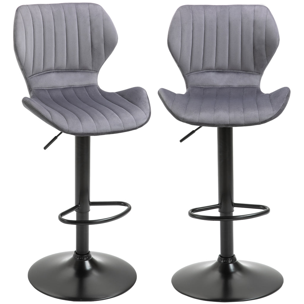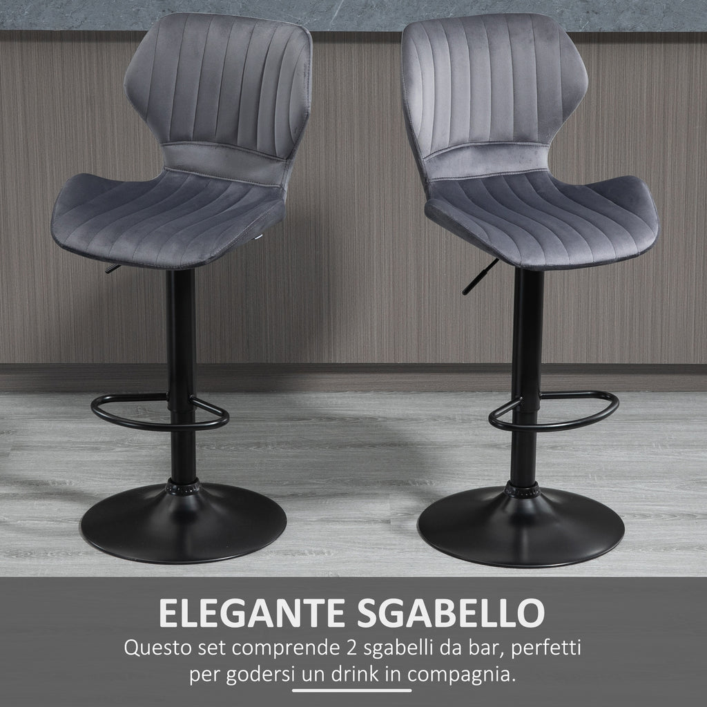 Set mit 2 Barhockern 47 x 51,5 x 91,5-113,5 cm aus grauem, samtigem Polyester