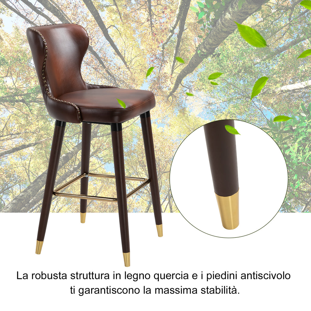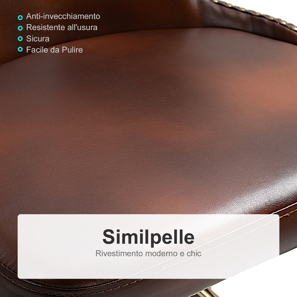 - Sitzfläche und Rückenlehne aus braunem Kunstleder, verziert mit goldenen Metallknöpfen