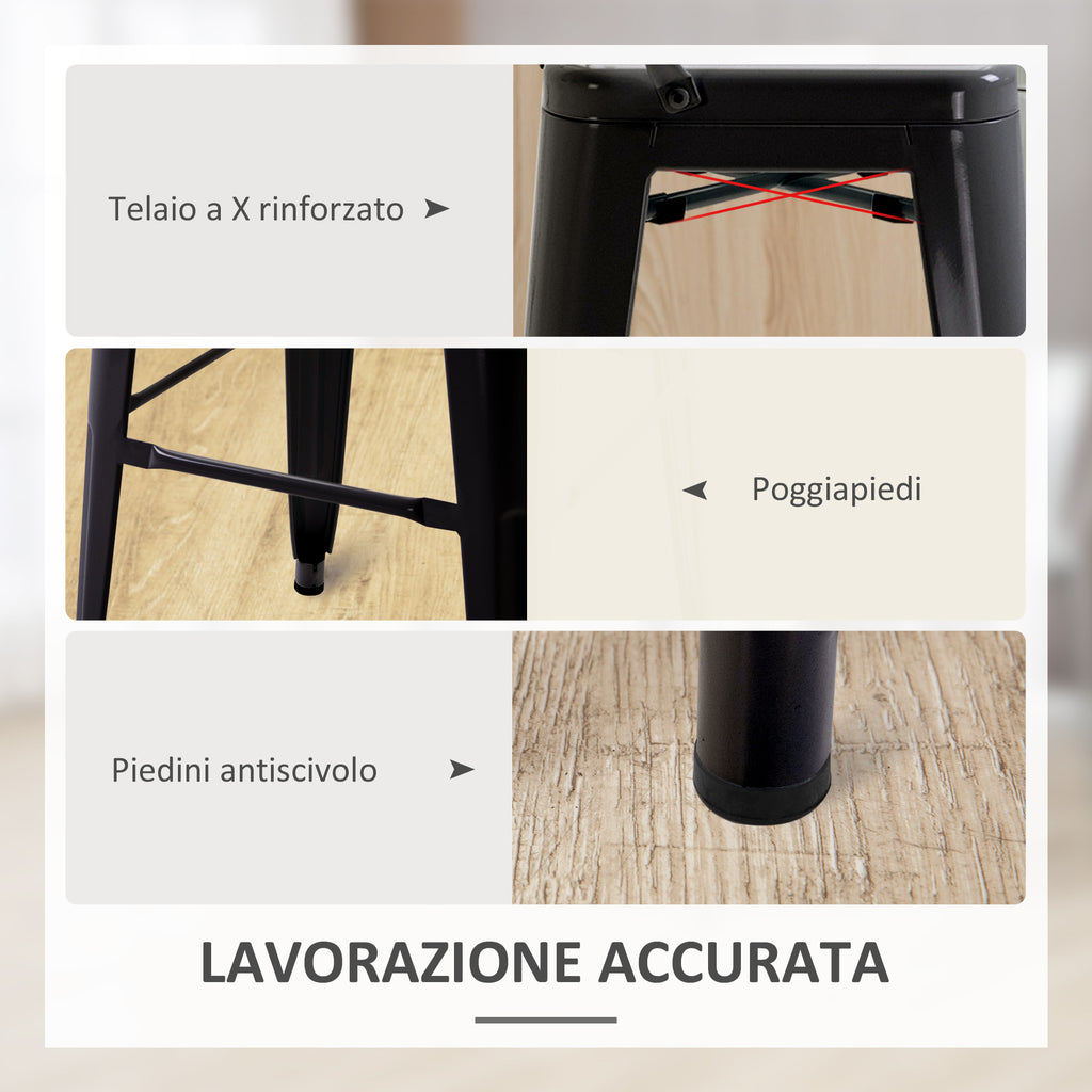 Set 2 Sgabelli da Bar Stile Industriale Schienale Rimovibile 44x49x116 cm in Metallo Nero