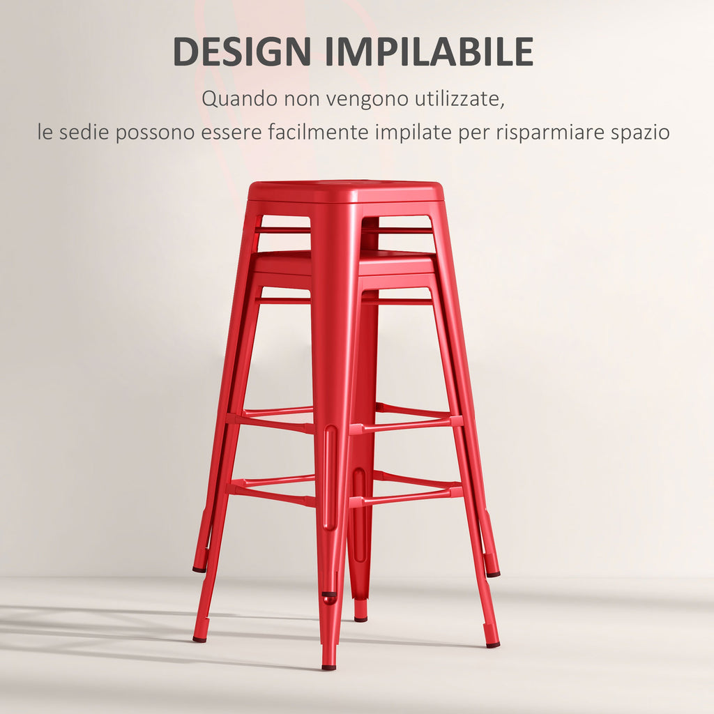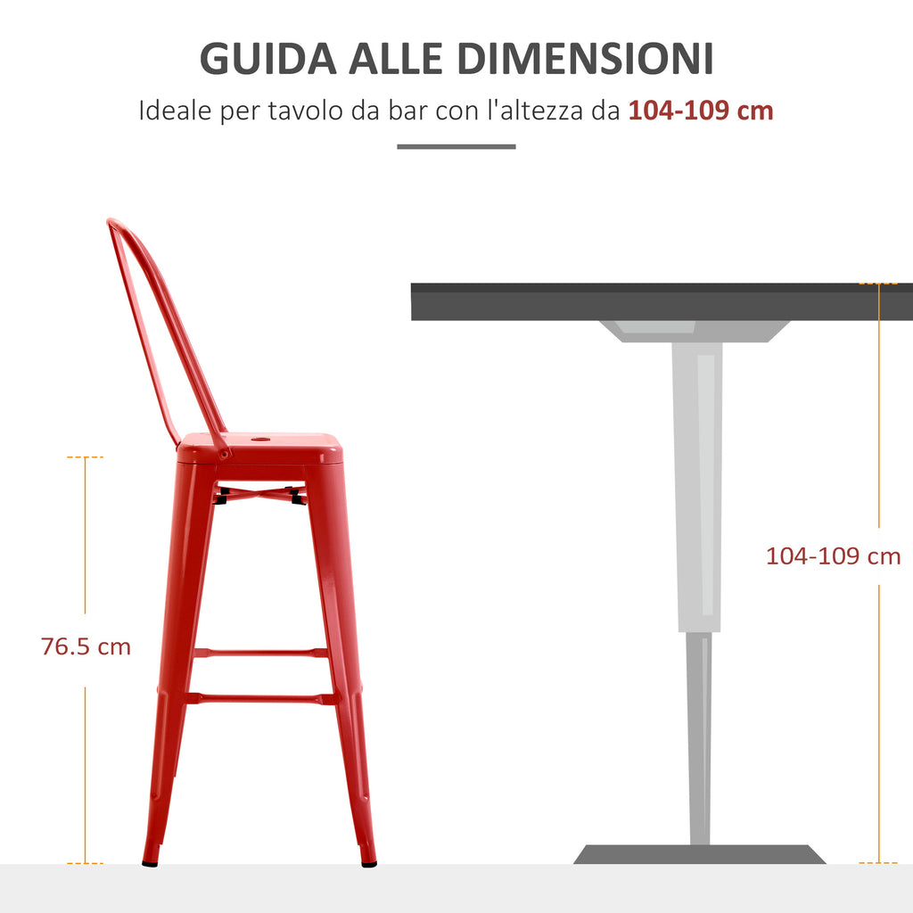 Set 2 Sgabelli da Bar Stile Industriale Schienale Rimovibile 44x49x116 cm in Metallo Rosso