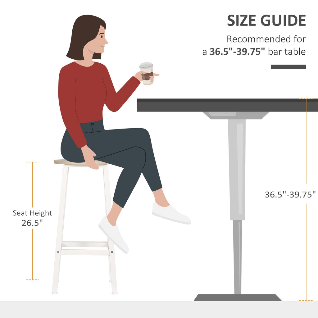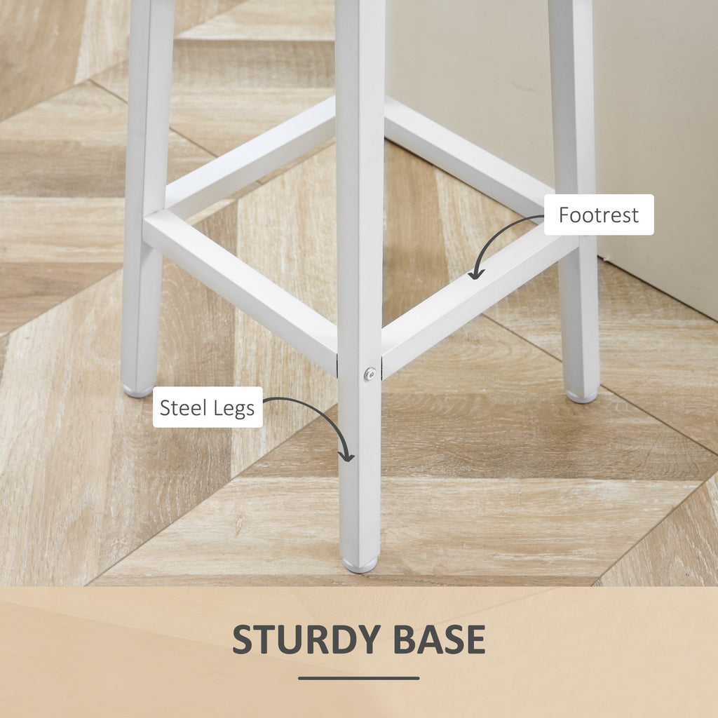 2er-Set Küchenhocker mit glatter Platte und Fußstütze 32,5 x 32,5 x 65 cm aus Spanplatte und weißem Stahl