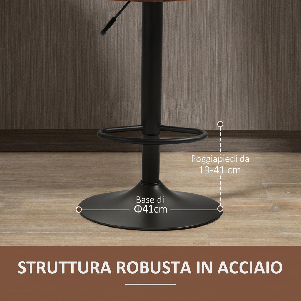 Set aus 2 gepolsterten Hockern 45x54x96-117 cm in Stahl und braunem und grauem Kunstleder
