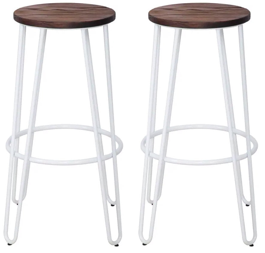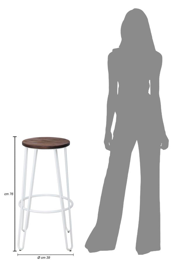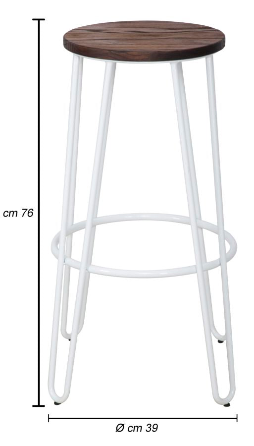 Set 2 Hocker Ø39x76 cm Detroit in Holz und weißem Eisen