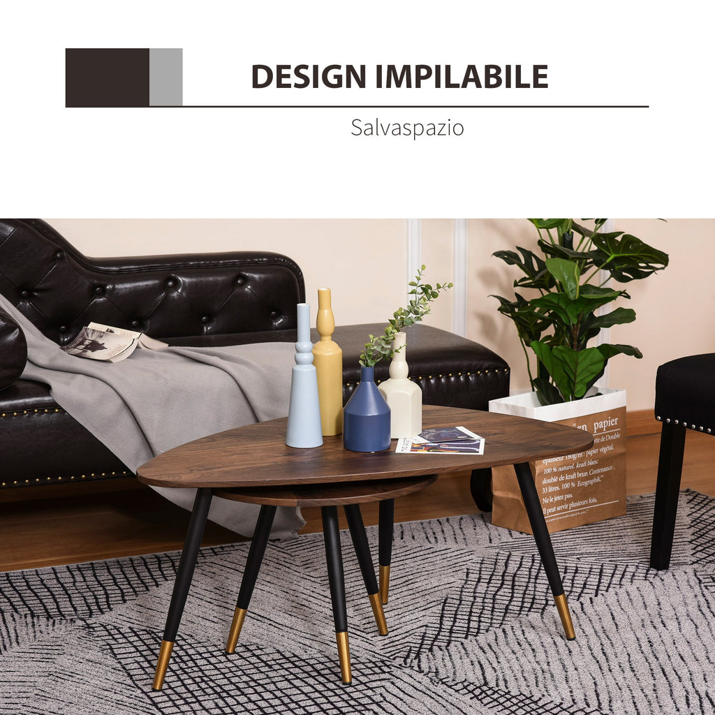 Set mit 2 tropfenförmigen Couchtischen aus Walnussholz