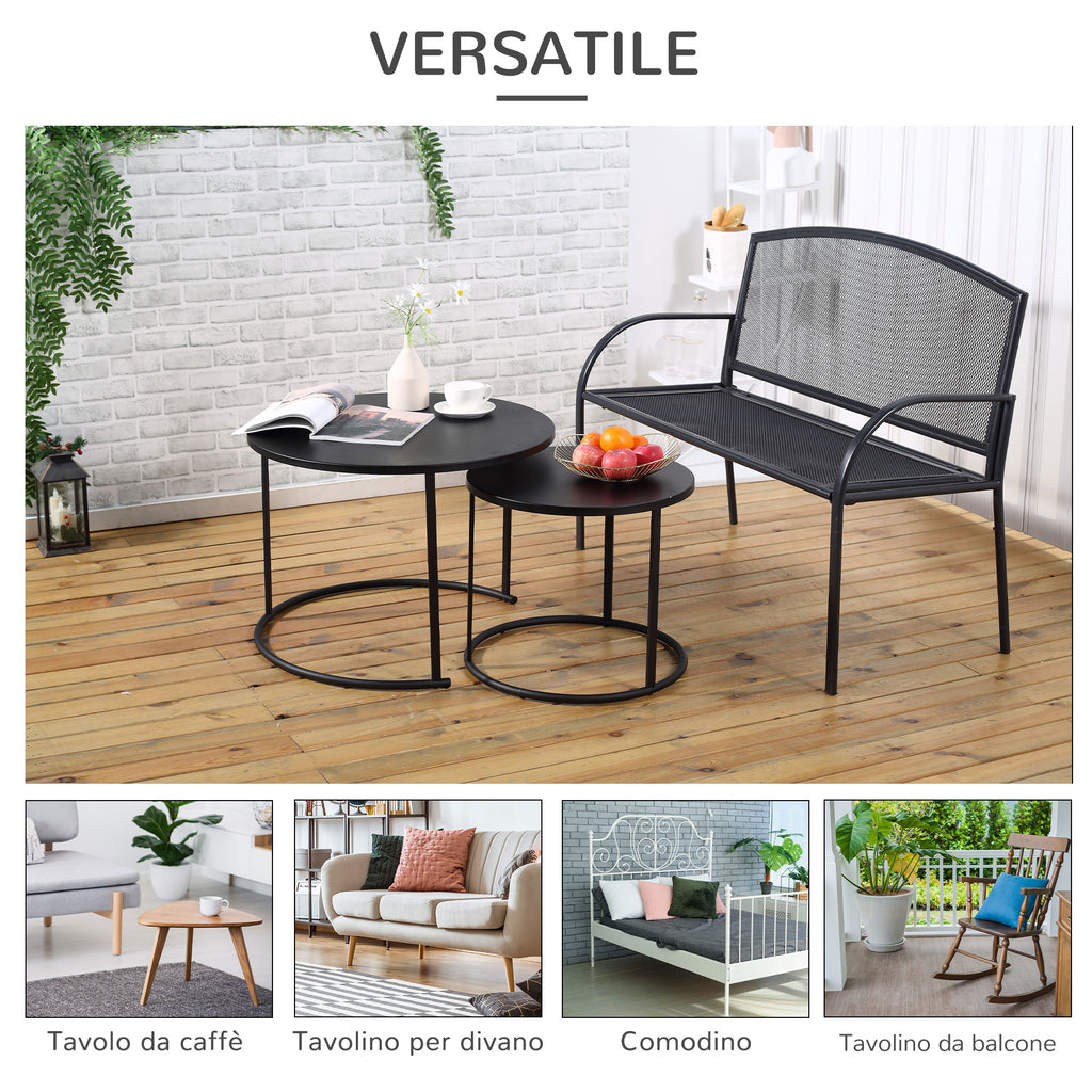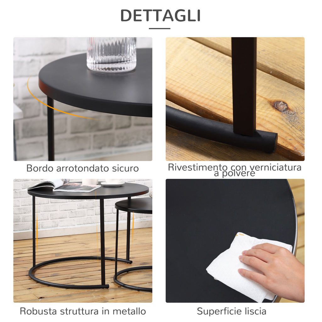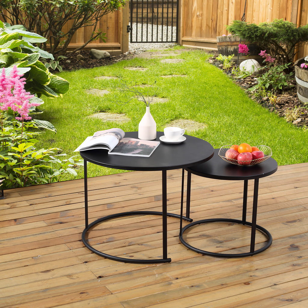 Set mit 2 stapelbaren Couchtischen aus schwarzem Eisen