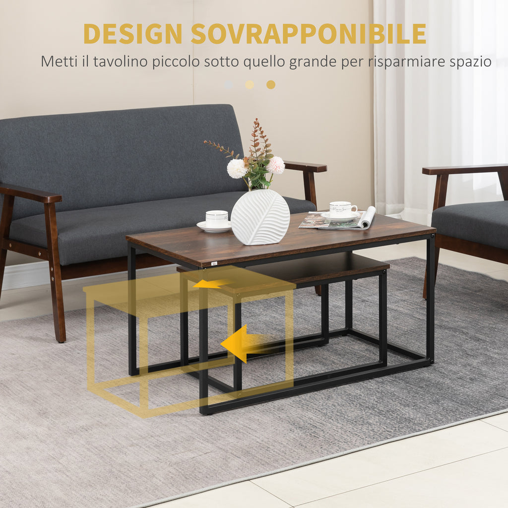 Set mit 2 stapelbaren Couchtischen aus Holz und braunem und schwarzem Stahl