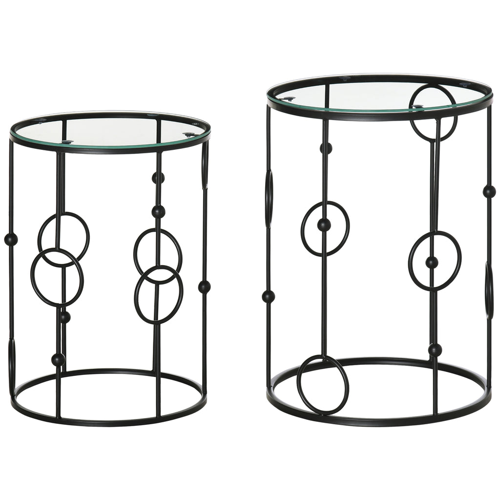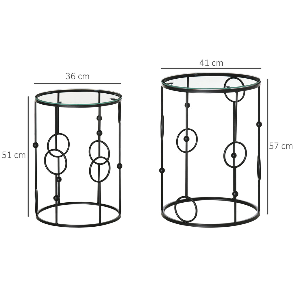 Set mit 2 stapelbaren Couchtischen aus schwarzem Metall und gehärtetem Glas