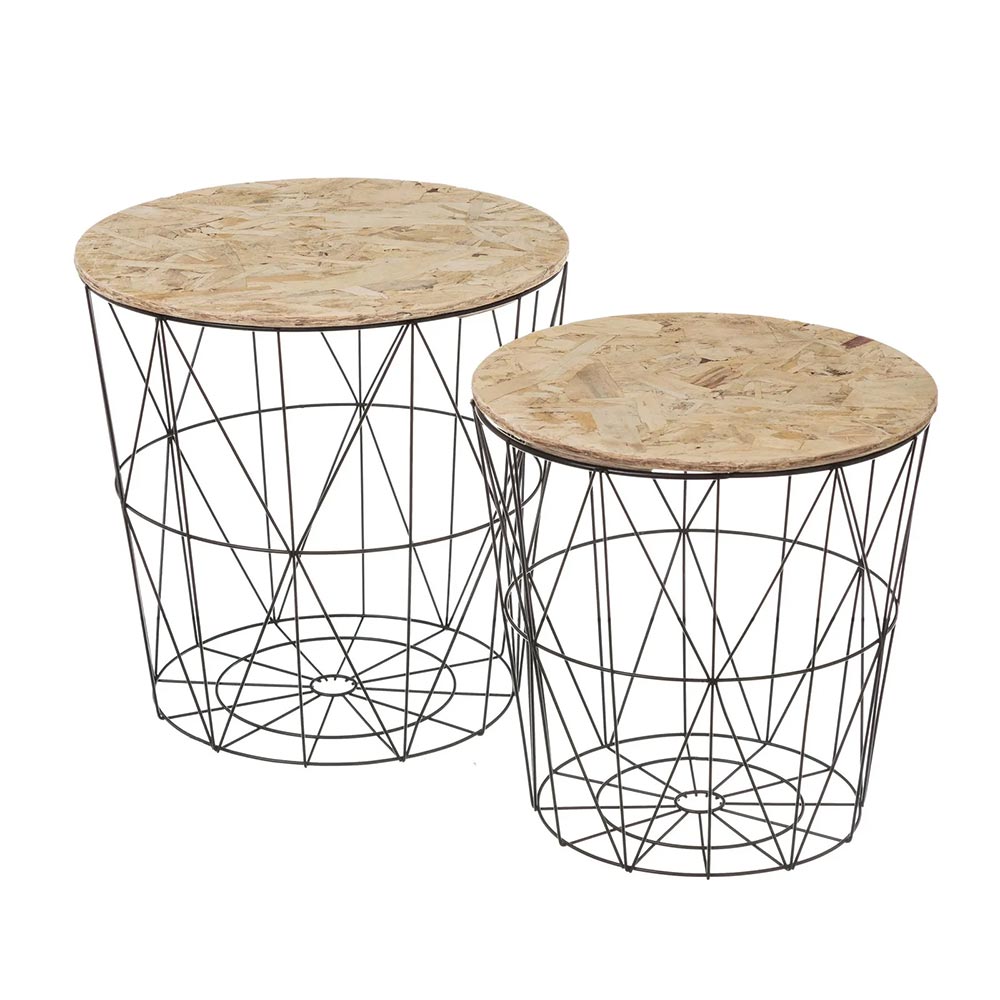 1 xSet 2 Tavolini da Salotto Tavoli per Divano Colore Nero in Metallo e Legno