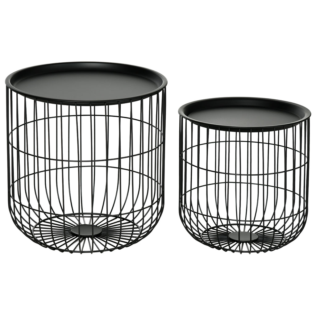 Set 2 Tavolini Impilabili con Vano Contenitore in Acciaio Nero
