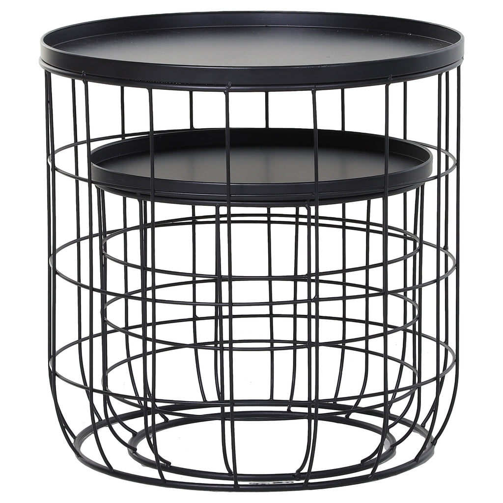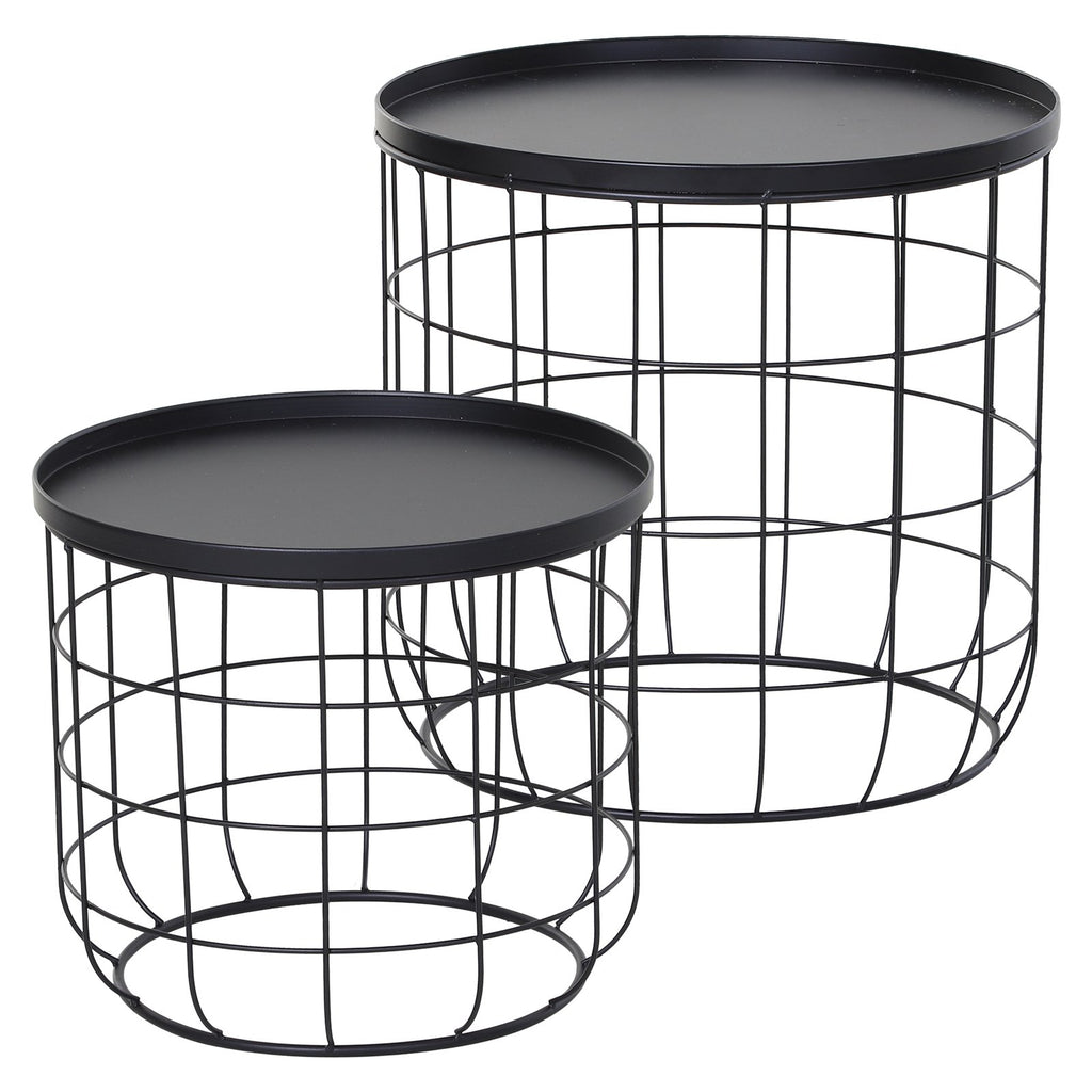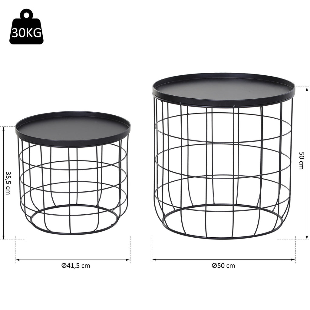 Set mit 2 Couchtischen aus Metall Ø50x50 cm und Ø41,5x35,5 cm Netz Schwarz