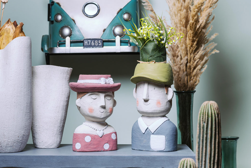 Set 2 Vasi Testa Donna con Capello H 27 cm