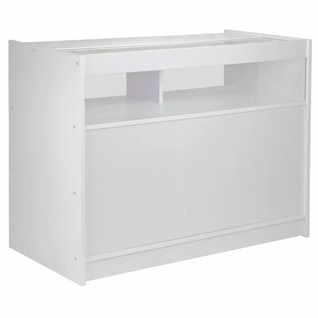 Un bancone chiuso con pannelli in vetro nella parte superiore e nella parte alta della parte frontale per mostrare e proteggere allo stesso tempo i tuoi articoli. Facile accesso attraverso l’apertura posteriore. Ci sono anche due ripiani così puoi immagazzinare oggetti sotto il bancone. Dimensioni: 90cm (altezza) x 120cm (larghezza) x 60cm (profondità).