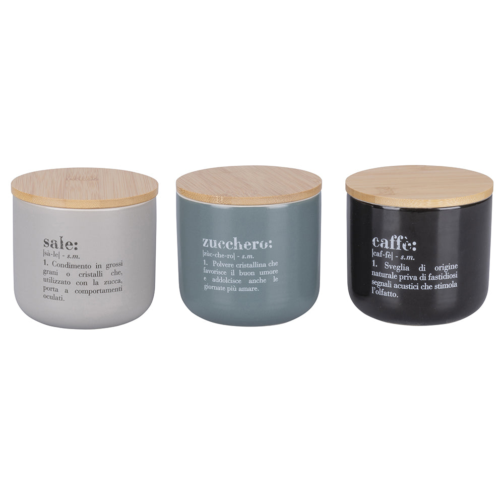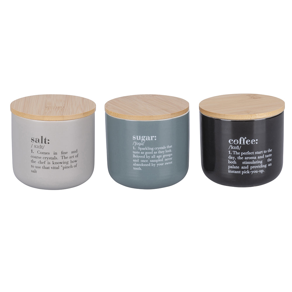 - Mit Schriftzug „Salt“, „Sugar“ und „Coffee“.