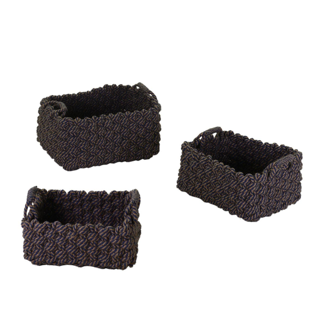 Set aus 3 rechteckigen blauen cremefarbenen Stoffkörben
