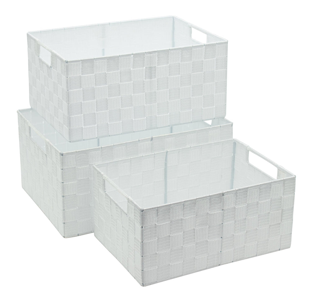 Set aus 3 Aufbewahrungskörben aus weißem Polypropylen mit Griffen