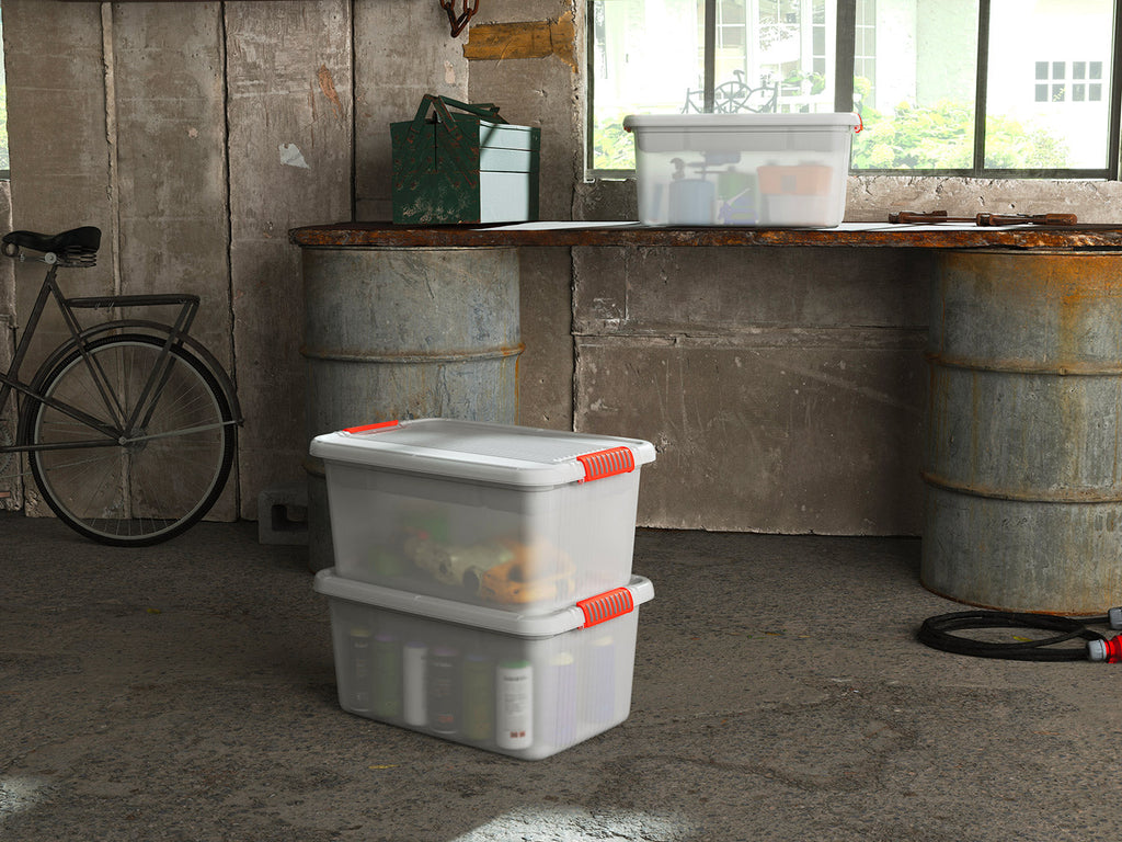 Ottimizza gli spazi della tua casa con i contenitori Kis. Grazie all'ampia capacità di stoccaggio, sono in grado di contenere libri, abiti stagionali, vestiti per bambini, scarpe, ma anche accessori e attrezzi fai da te. Possono essere impilati uno sopra l'altro, ed essendo trasparenti, è sufficiente uno sguardo veloce per visualizzarne il contenuto. I tuoi oggetti saranno perfettamente protetti da polvere e umidità.