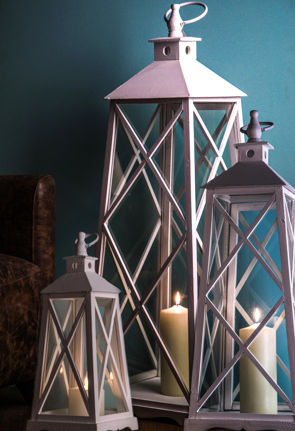 Set Di 3 Lanterne In Legno. Altezza 112 Cm