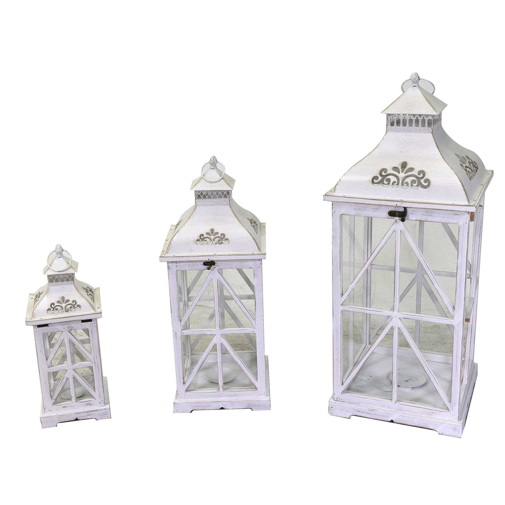 Set 3 Holzlaternen aus quadratischem gebleichtem Metall
