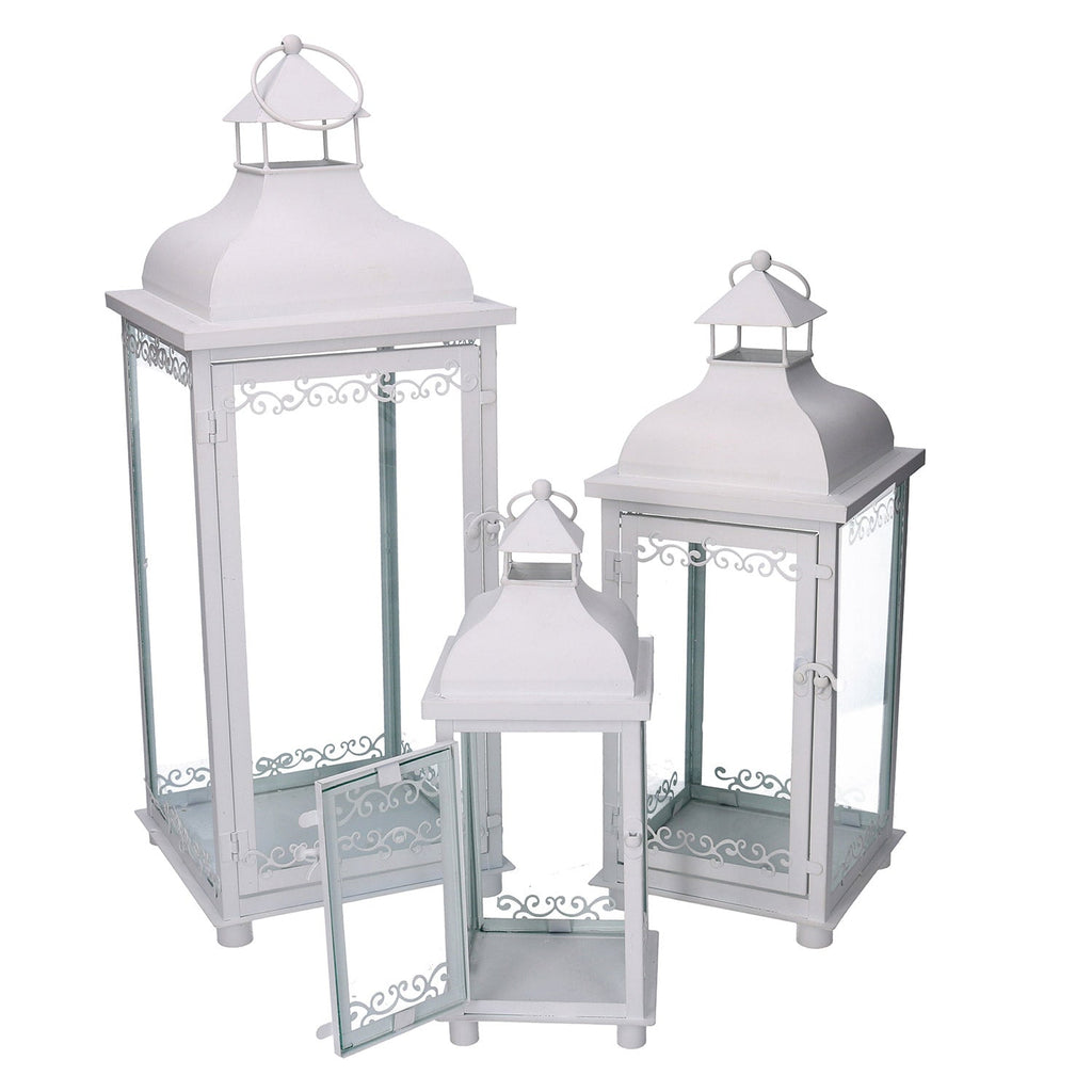 Set mit 3 Laternen aus weißem Metall
