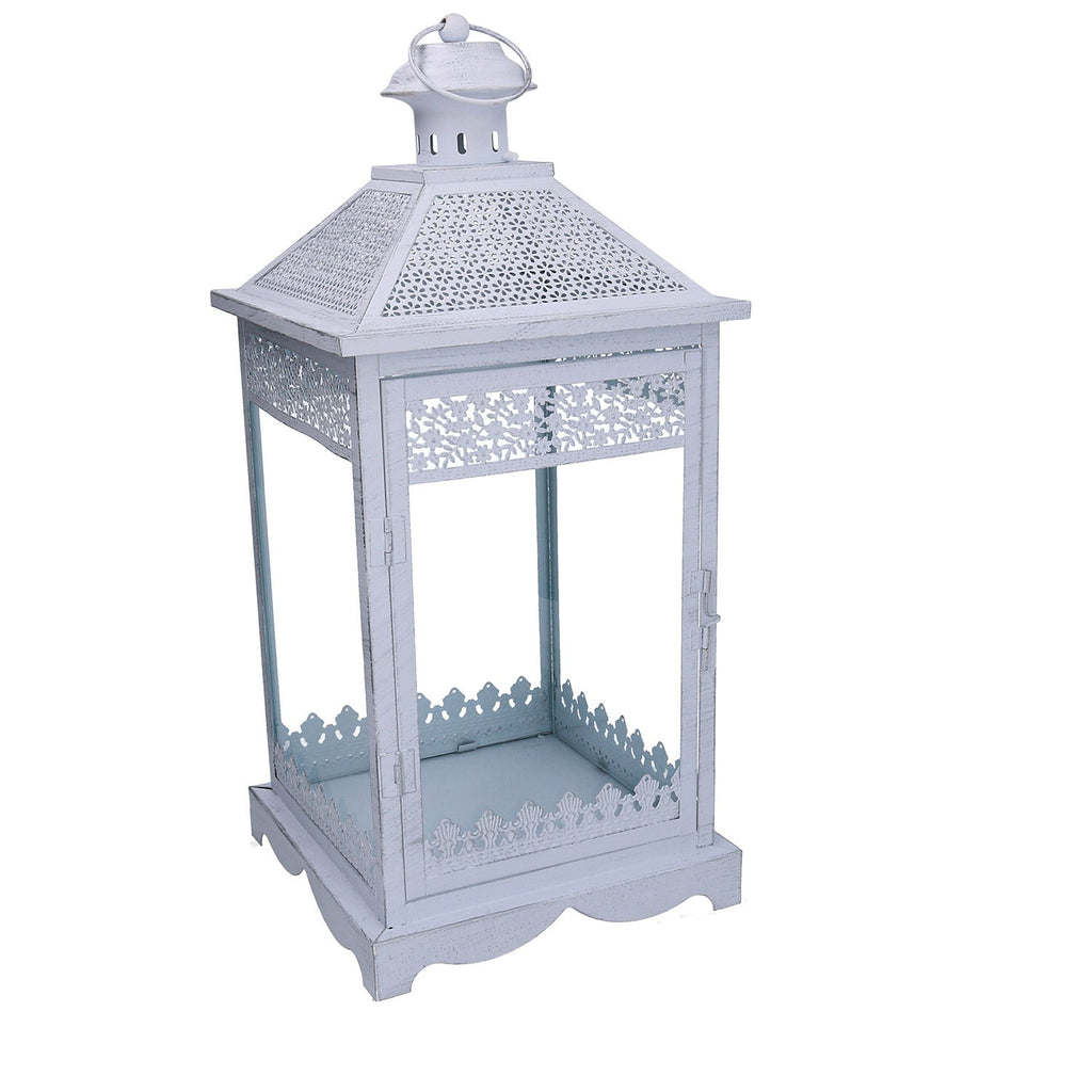 - Metalllaterne 1^ matt weiß silber quadratisch 13,5x13,5xh28 cm