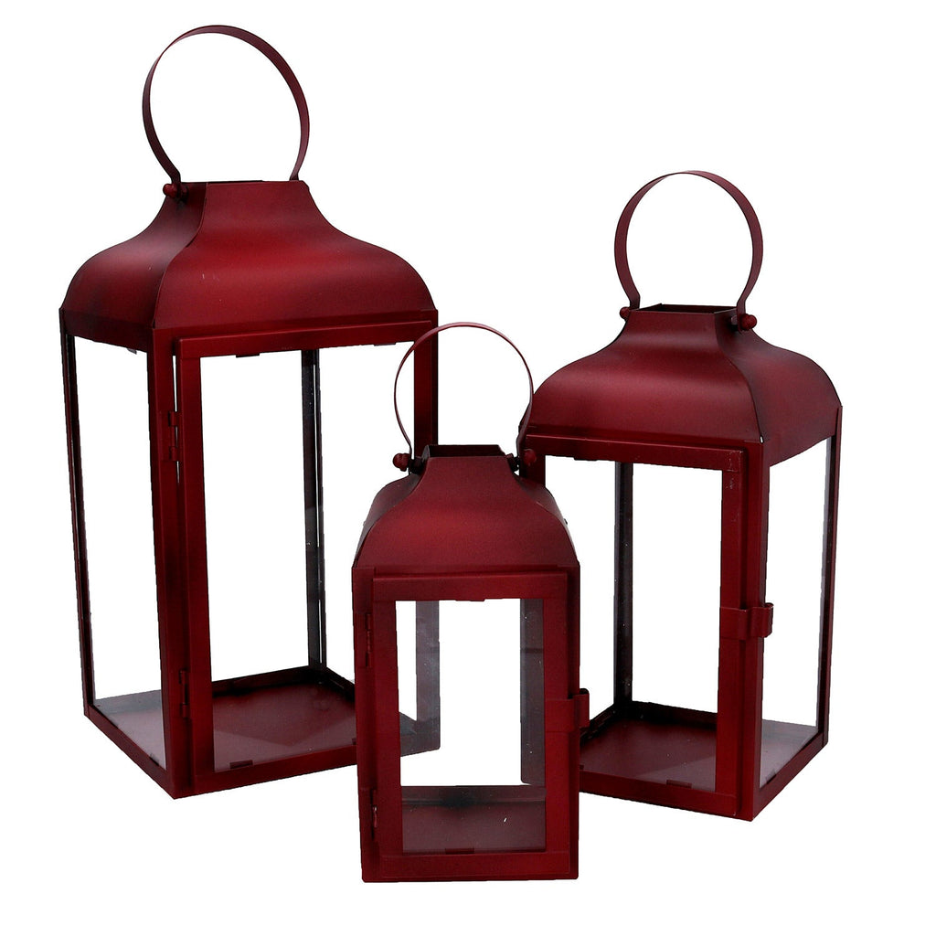 - Quadratische rote Metalllaterne 3^ cm 16,5x16xh32