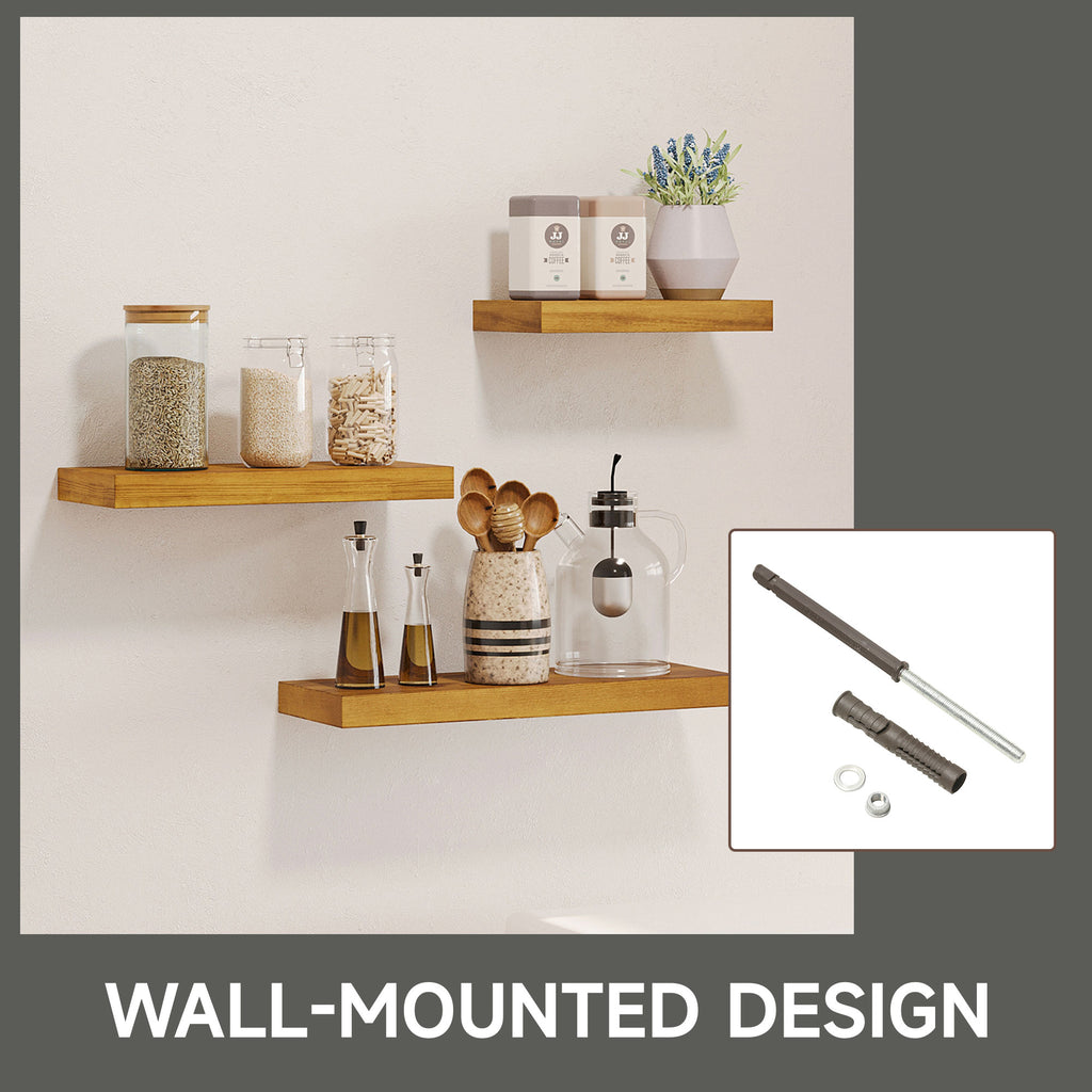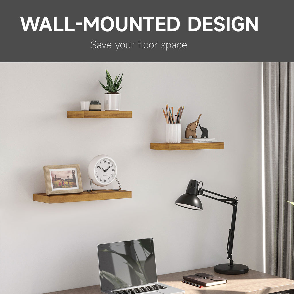 Set 3 Mensole 30/40/50x18x3,6 cm in Legno di Pino Marrone