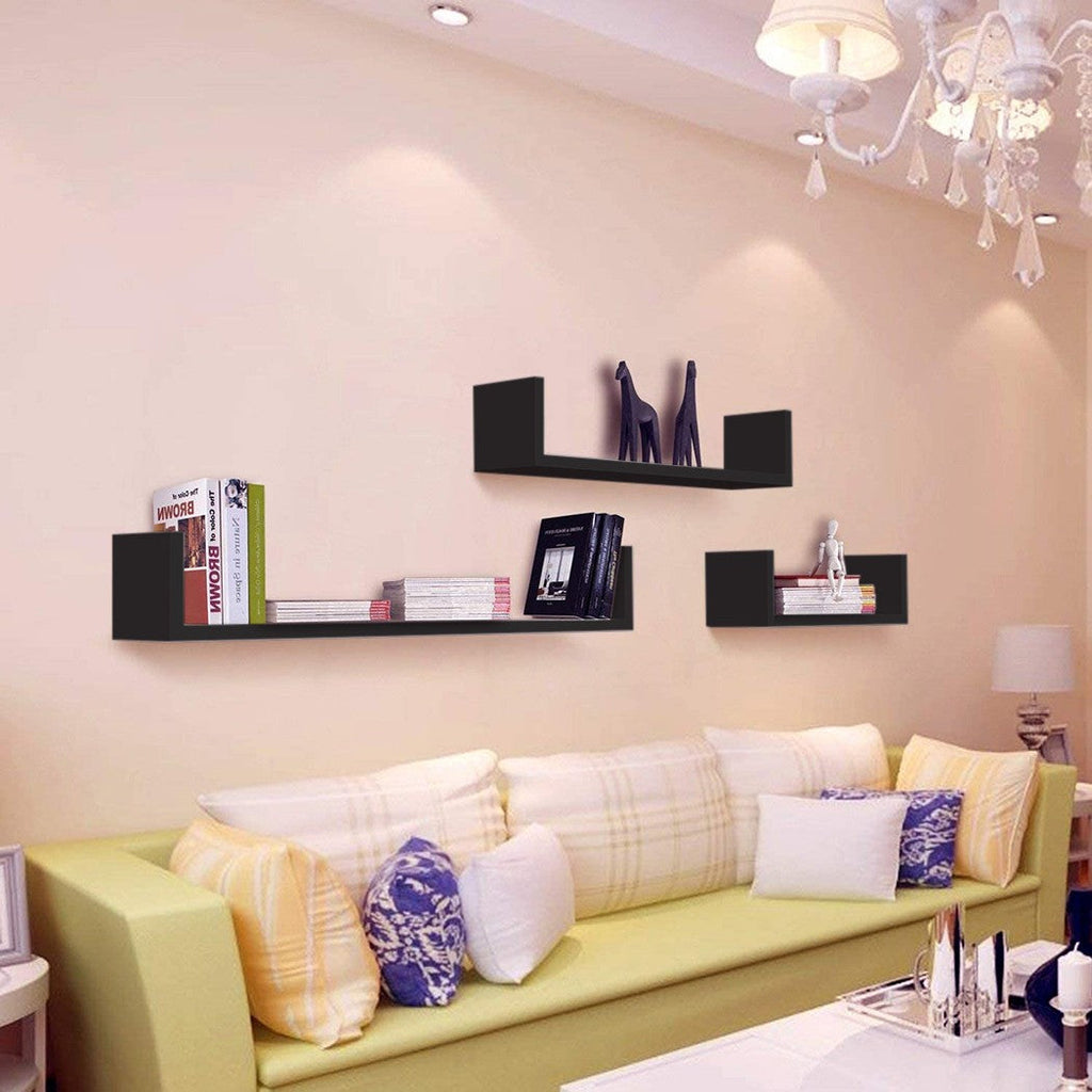 Set mit 3 U-förmigen Regalen 30-40-50 cm Schwarze Wandaufbewahrung