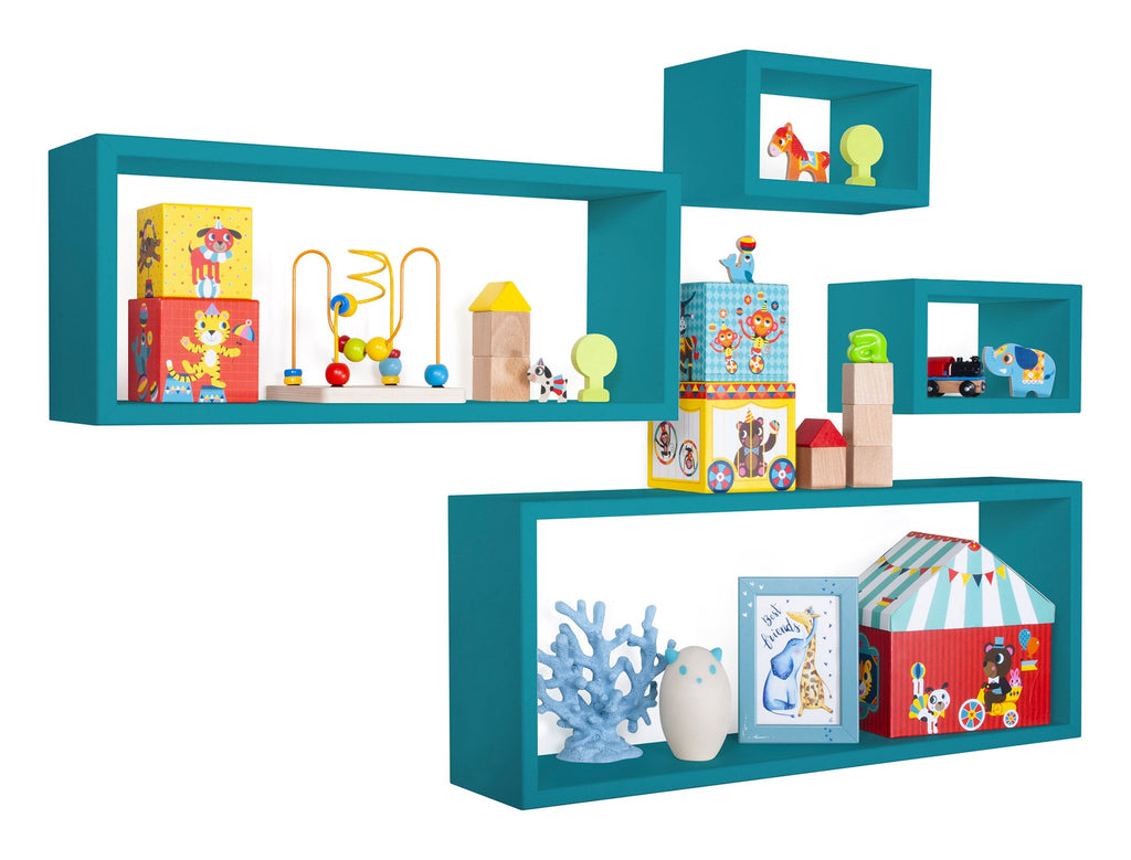 Set 3 Mensole Cubo da Parete Quadrato e Rettangolare in Fibra di Legno Merlino Blu Atollo