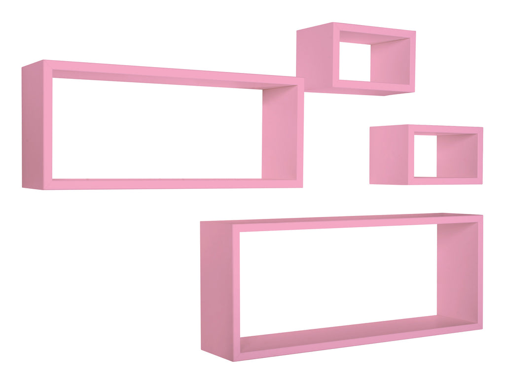 Set 3 Mensole Cubo da Parete Quadrato e Rettangolare in Fibra di Legno Merlino Rosa Blush