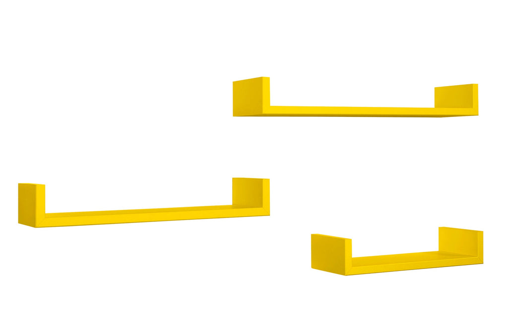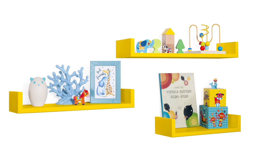 Set 3 Mensole da Parete 60-50-40x15,5x8 cm in Fibra di Legno Calamita Giallo Canarino