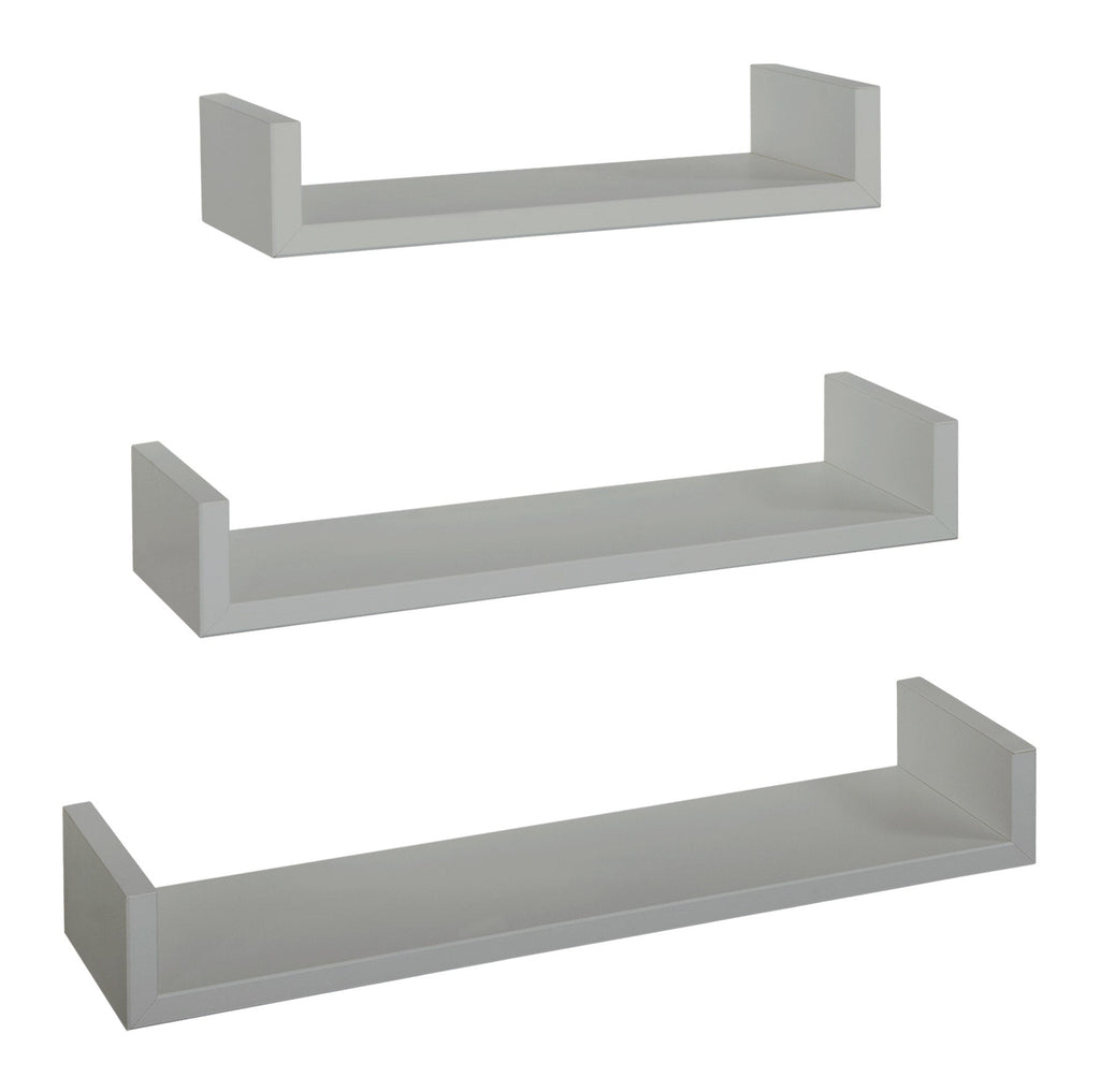Set 3 Mensole da Parete 60-50-40x15,5x8 cm in Fibra di Legno Calamita Grigio Sasso
