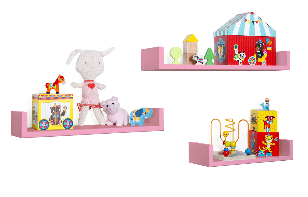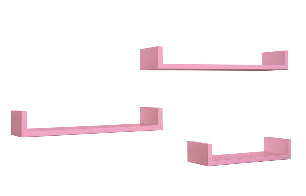 Set 3 Mensole da Parete 60-50-40x15,5x8 cm in Fibra di Legno Calamita Rosa Blush