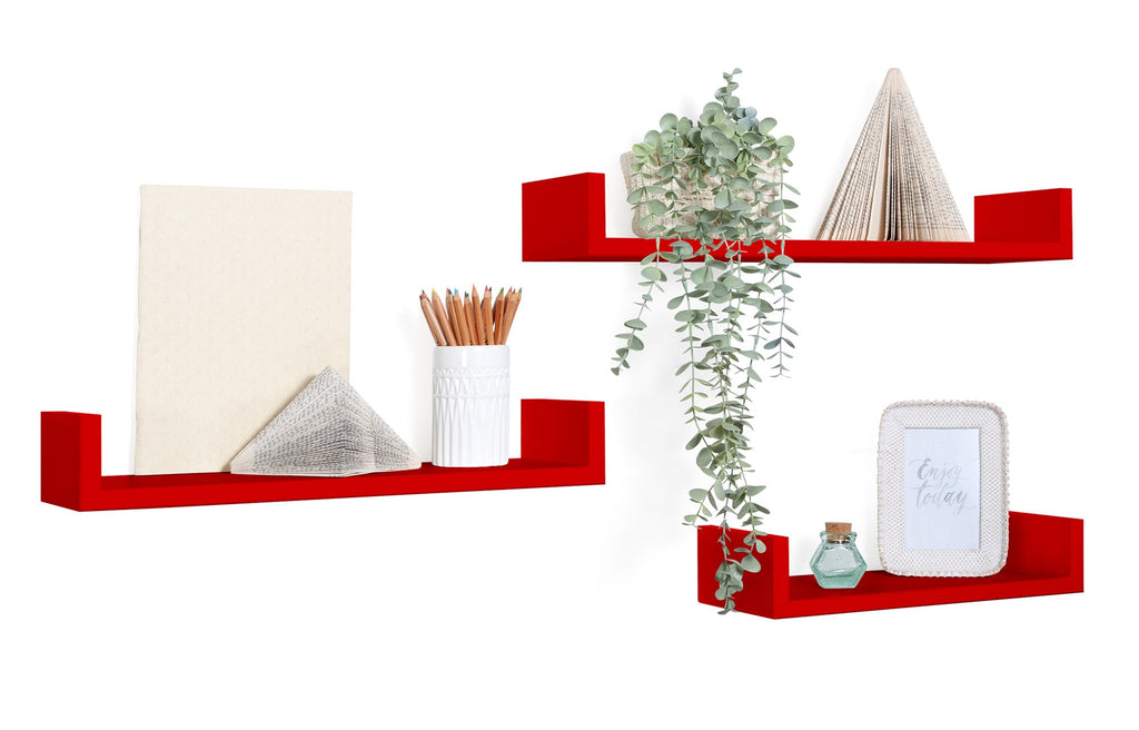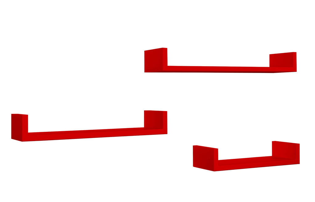 Set 3 Mensole da Parete 60-50-40x15,5x8 cm in Fibra di Legno Calamita Rosso