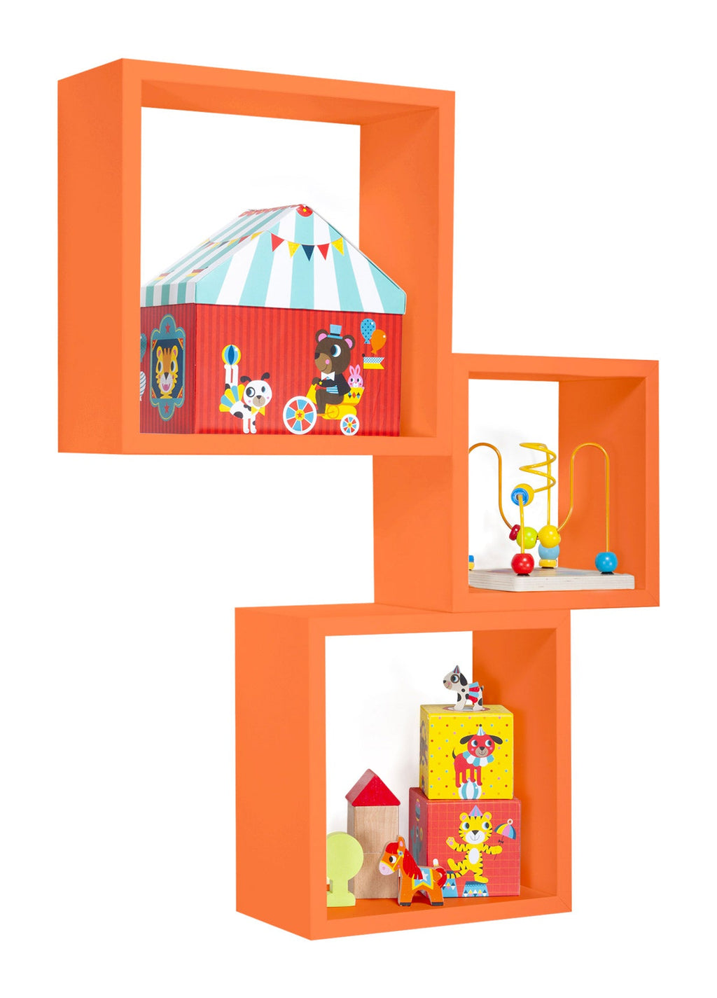 Set 3 Mensole da Parete Cubo in Fibra di Legno Incubo Arancio